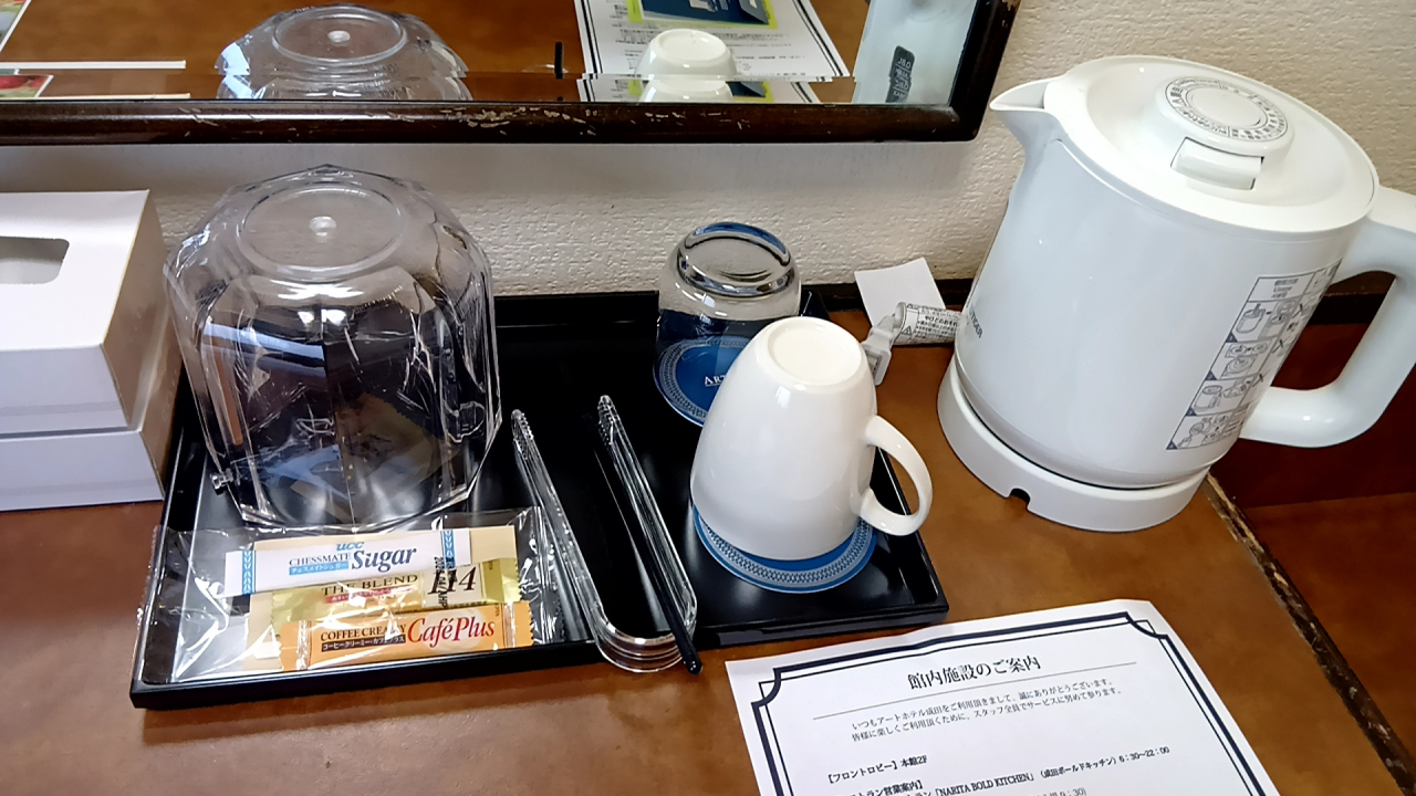 部屋にドリップコーヒーが置いてあったけど、砂糖・ミルクは無かった。