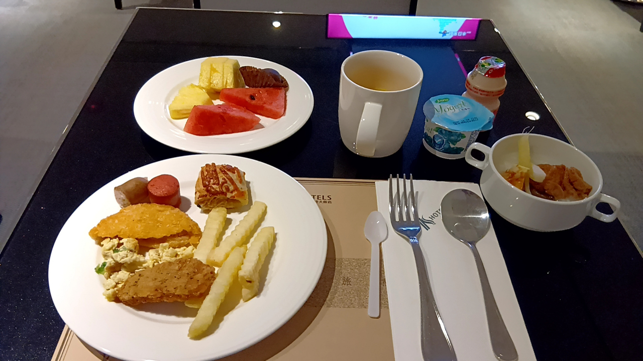 レストランプランタンの朝食は美味しかったです。でも不思議なことにさんぴん茶やオレンジジュースなどのドリンクサーバーがなくなっていて、食事中に飲む甘くない飲み物はドリンクマシーンのウーロン茶くらいしかなかった。
