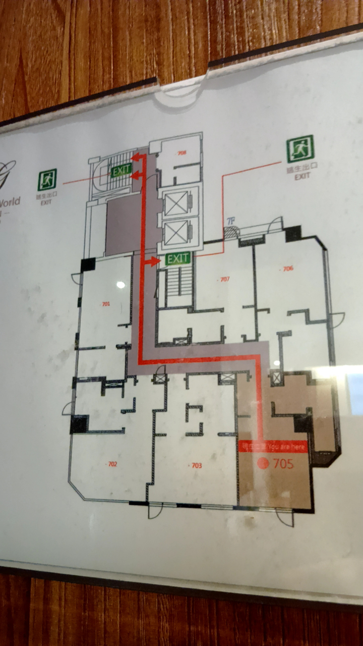 知らされていない消防訓練で、突然けたたましいサイレンと大きな音での館内放送(中国語)があり、凄くびっくりした。