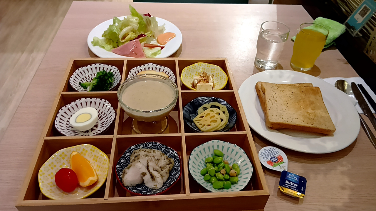 朝食は思ってた以上に品数が有って内容も悪くなかった。