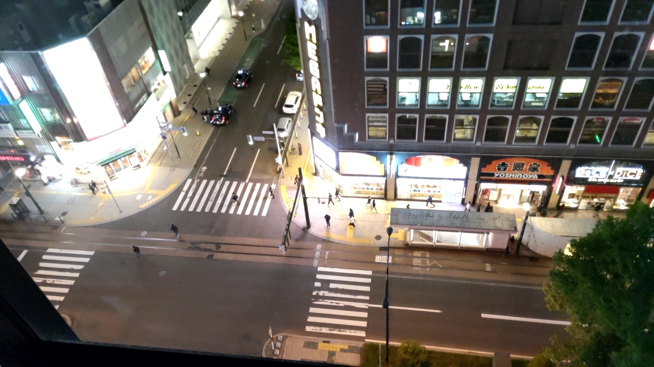 徒歩4~5分で狸小路に行けるし二条市場も近く、立地的には申し分ない。