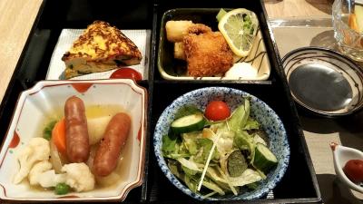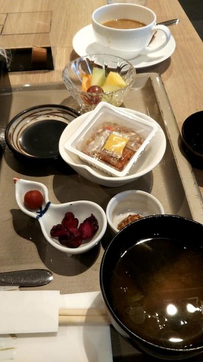 この時期、朝食レストランの営業は7時からだったので早い便に乗る時には食べられません。以前はビュッフェスタイルでしたが今は定食スタイル。メインのおかずセットは同じで、主食をパンにするか御飯にするかで「ライスセット」か「パンセット」を選びます。
