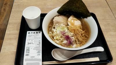 店のあるフードコート前を何度も通った事が有りますが、大体いつも空いています。食事をするつもりは無かったけど、搭乗待ちの間にスマホで検索したら「美味しい」という口コミと、ハーフラーメンがあると言うので試しに食べてみることにしました。注文したのは塩ラーメン¥800。ハーフラーメンはありませんでした。麺の見た目が“日本そば”で食感はブリンブリン。スープは油分が浮いていましたがコクや出汁の風味は感じられませんでした。