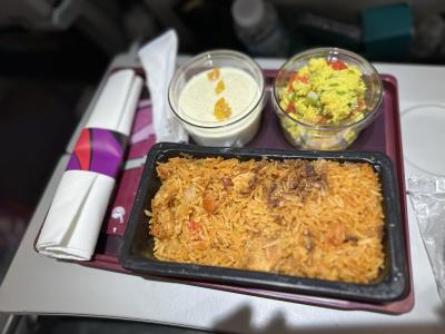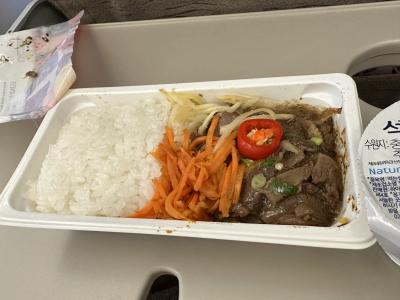 ドーハから仁川便での機内食。もう、匂いだけで気持ちが悪い~(ーー;)ホ...