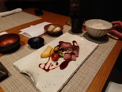 ローストビーフは溶岩プレートで焼き焼きされて、目の前でサーブされました...