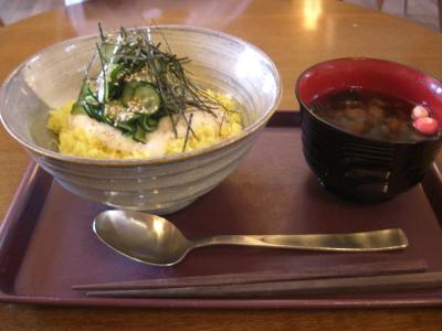 擂り下ろした長芋がかかり、その上に薄く切ったきゅうりの浅漬け