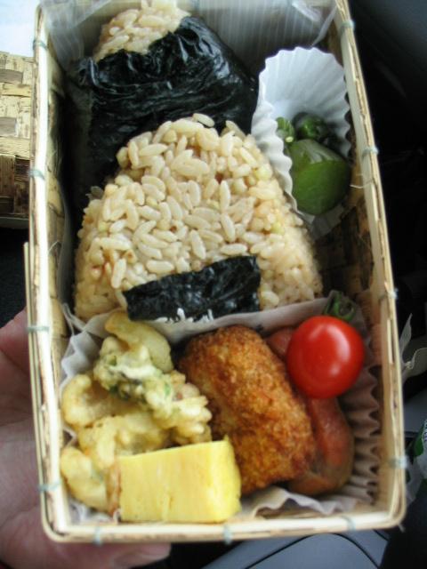 深川市はそばの産地がだそうで『深川そばめし』と言うお弁当を買いました。おにぎりに古代米とそばの実が入っていて、そばつゆで味付けされていて素朴な味わいでした。
