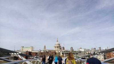 テートモダン側からステンレス素材の橋にのぼると真正面にセントポール大聖堂が構えており、その荘厳な景観たるや息をのむほどです。