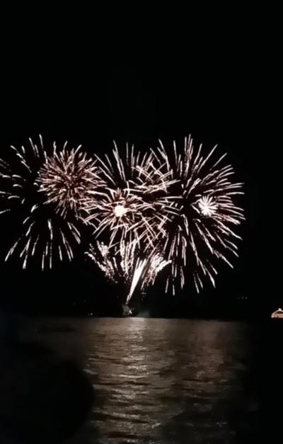 (花火)ホテルの目の前の湖で、船がぐるりと湖を一周するように花火を打ち上げます。打ち上げ時間はまあまあ長いものの、湖畔のホテル一帯から見えるように船が動くため、近くで見られる時間は短かったです。