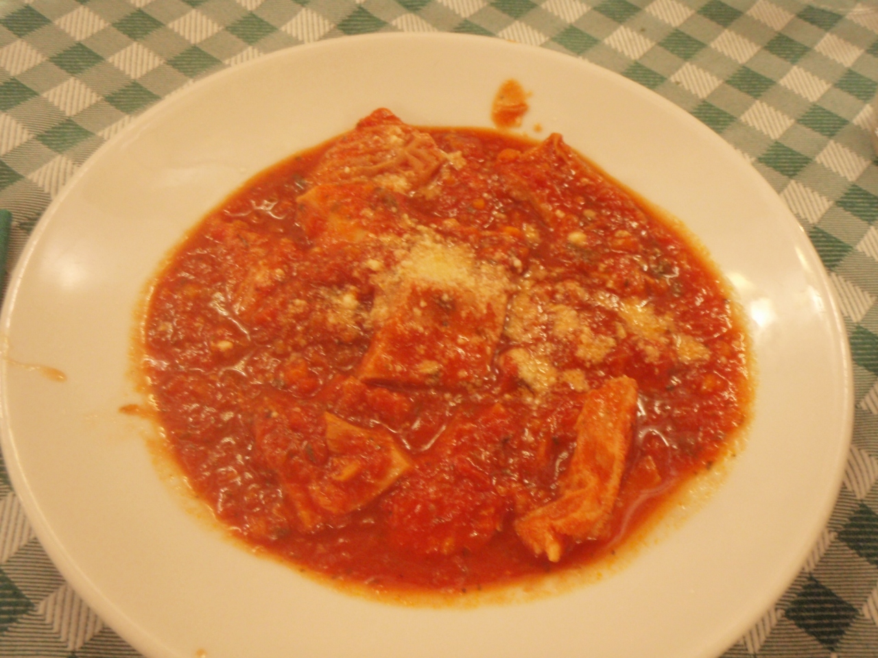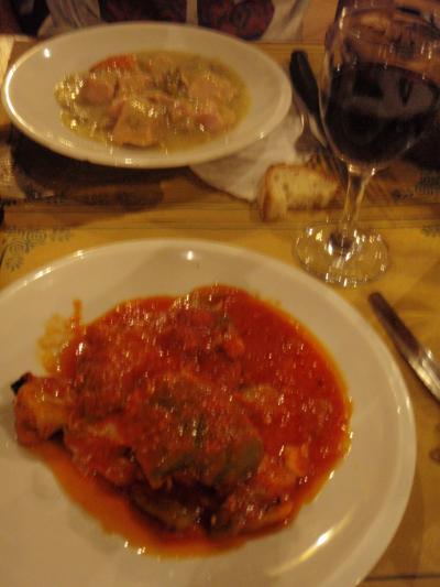 (第二)「トリッパ」というもつのトマト煮込み7ユーロ。食感で好き嫌いが分かれそう。