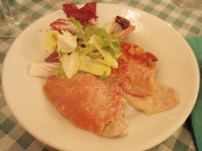 (第二)肉料理が3品。そのうち写真の豚肉がなかなかおいしかった。相方が頼んだミラノ風カツレツは普通。