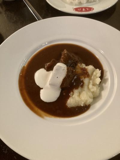 阪急西宮北口駅から徒歩3分のところにお店はあります。11時開店ですがすぐに埋まっていました。店内はレトロで重厚感のある雰囲気です。名物というタンシチューを注文。先にサラダが出てきて、野菜のシャキシャキ感と酸味のあるドレッシングが美味でした。タンシチューは下にマッシュポテトが敷かれ、お肉はホロホロ、赤身の旨みがしっかりしていました。