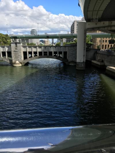 錦橋は朝日フェスティバルホールの南側にあり、土佐堀川にかかっています。上に阪神高速がかかっていたり、都会の街の中にあっても違和感のない重厚感のある橋でした。歩行者専用となっており、橋の上にギャラリーがあります。