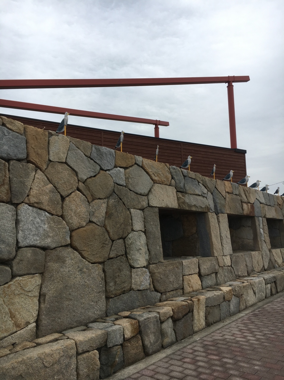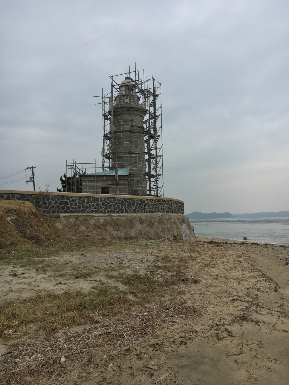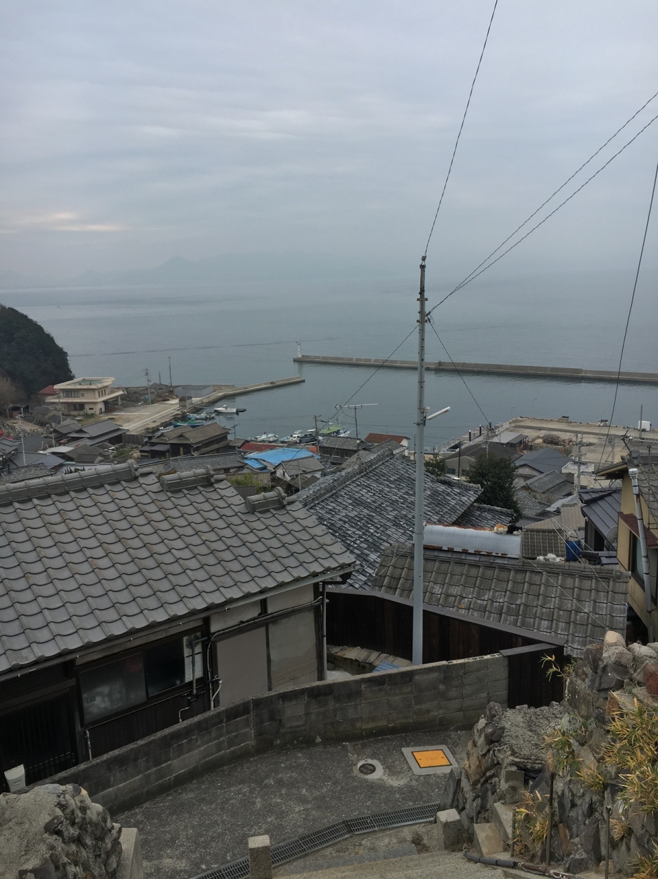 女木島港からすぐのところにもオーテはあります。これは冬の強い風から集落を守るために設置されているもので、写真よりも実物は随分と大きく厚く見えました。こういったところから島の生活を学ぶことができます。冬に訪れましたがたまたまなのか全く風が強いという感じがなかったのですが、強い時はすごいのだろうと想像しました。
