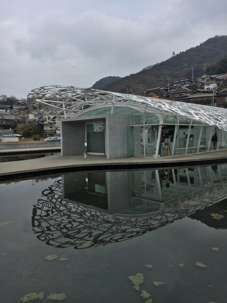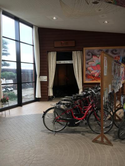 フェリーのりばからすぐ、建物は特徴的な外観です。内部は休憩スペースと本日空いている飲食店の案内、そして地図が置いてあります。島内にトイレがあまりないので、こちらで済ませておくと良いと思います。トイレは清潔で利用しやすいです。昔はこちらで軽食が採れたようですが、今は名残は残っていますが何もなく、勿体ない気がしました。オフシーズンだと空いてるお店もほとんどないので、こちらでコーヒーや軽食がとれると便利になると思いました。