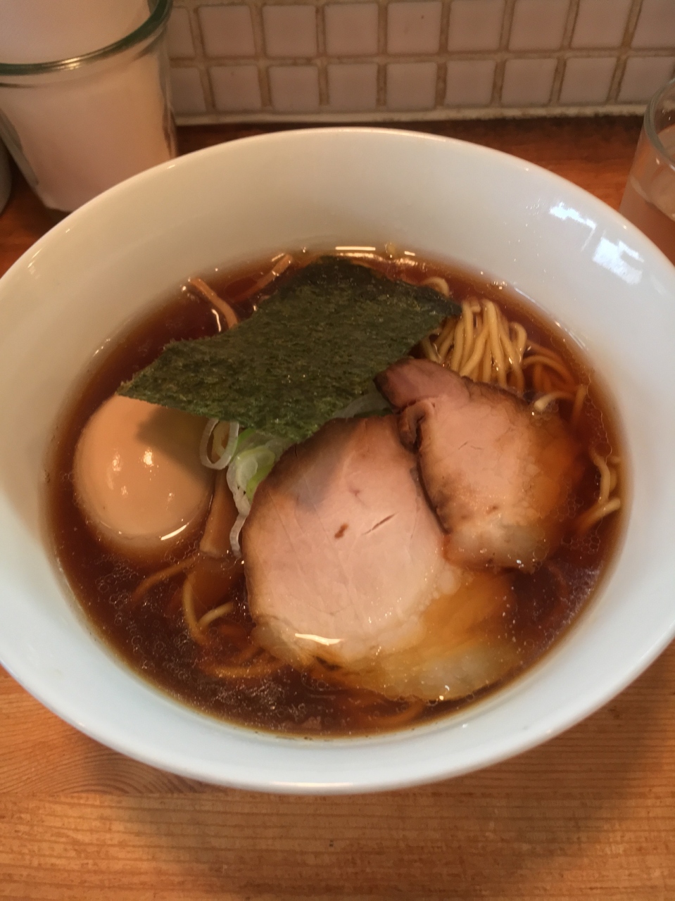 あびこの有名なラーメン屋さんとのことでお邪魔しました。店内はカウンターのみでとても清潔な感じです。券売機方式で精算します。お水はレモンの風味が少ししました。カウンターにはこだわりの食材を書いたものが置かれていました。ラーメンは醤油ベースで、麺はしっかり目で喉越し良く美味でした。事前に調べた評価がとても高かったためか、美味しく丁寧に作っているという感じは受けましたが、飛び抜けたものは感じませんでした。