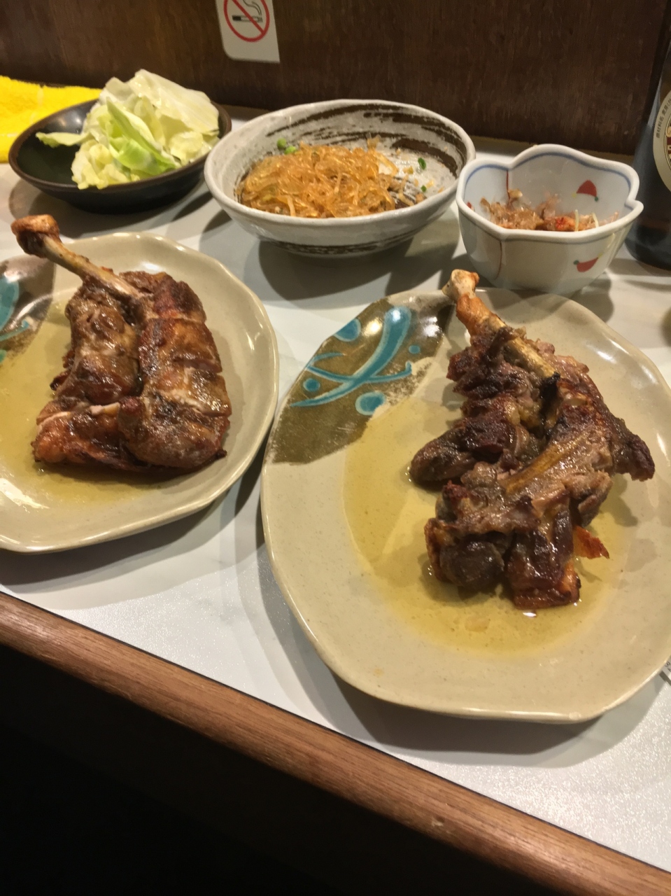 骨付鳥は一鶴が有名ですが、今回は商店街にある寄鳥味鳥さんへお邪魔しました。カウンター席とテーブル席があり、カウンターに通されました。カウンターにはおばんざいが数種あり、とりかわと周りのお客さんに頼んでいる人が多かった春雨を注文。春雨はにんにくが効いており美味、とりかわも噛むと味わいあり良かったです。骨付鳥はおやとひなを注文。親鳥は硬くて食べるのがしんどいイメージでしたが、こちらの親鳥は弾力はありますが、噛みしめると鳥の旨味が広がり硬すぎず美味でした。骨付鳥に合うという日本酒くらうでぃは酸味があり、たしかに合う日本酒でした。常連さんと観光客が混在するお店でした。店員さんは対応よく、とてもよいお店でした。