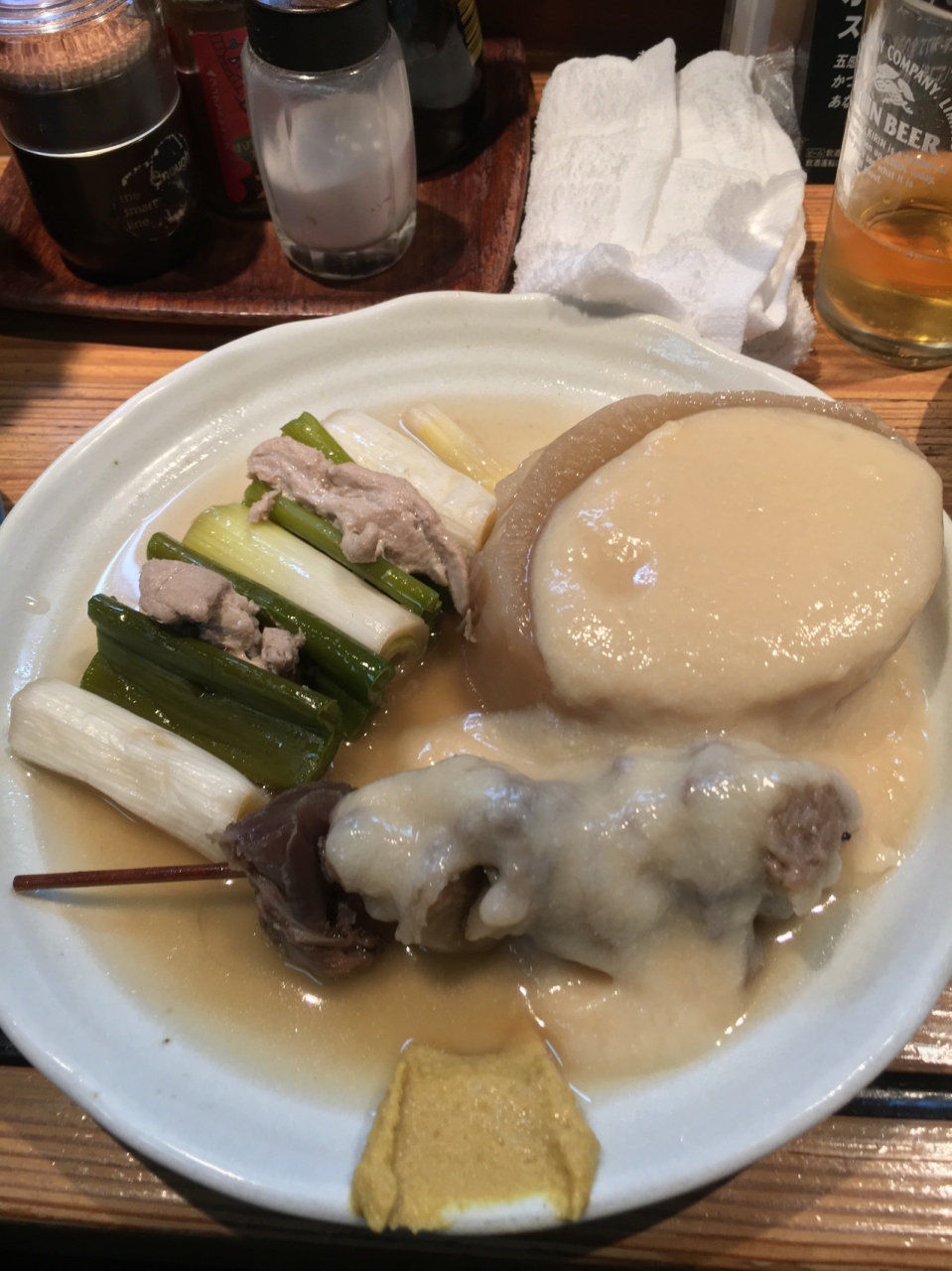 新開地駅から地上に出てすぐの所にお店はあります。店内はカウンターメインでテーブルも少しあり地下にも席があるようでした。メニューは豊富で大衆居酒屋といった感じです。おでんがウリのようで、変わり種もたくさんありました。どれもよく味がしみてお酒に合う美味しいおでんでした。特にねぎまが印象的でした。店員さんもフレンドリーでよかったです。メディアにも取り上げられる新開地の有名店のようです。