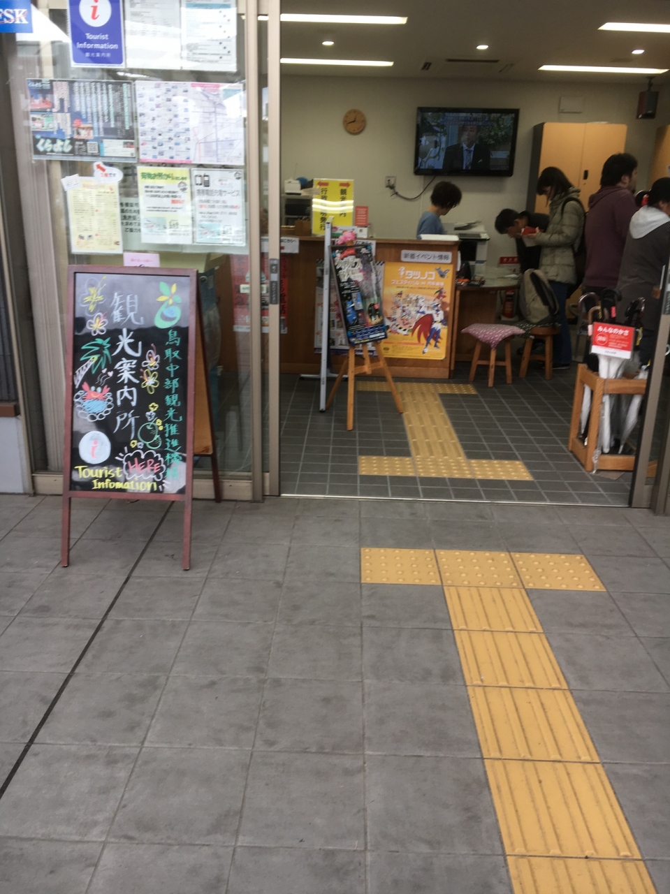 倉吉駅からエスカレーターを降りたところにあるため、見落とすことはないと思います。倉吉、湯梨浜を含めた周辺の地域のパンフレットも揃っています。スタッフは訪問時一人しかいなかったので少し待つ必要があるかもしれませんが、ここで情報を集めておくとよいと思います。