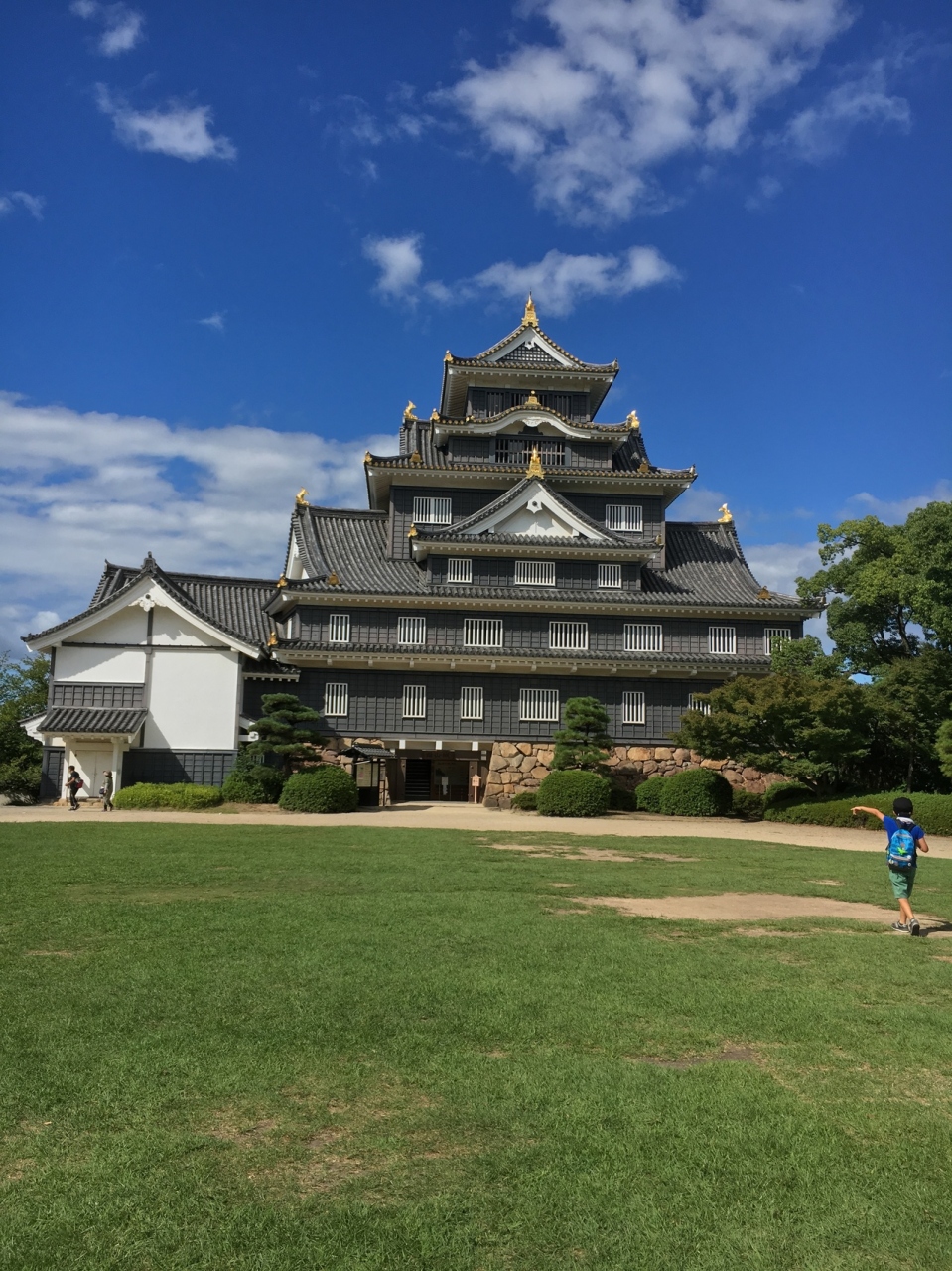 後楽園に入ると岡山城が少し顔を覗かせております。後楽園とのセット券でまわるのがお得かと思います。お城の外観はいかにも再建されたものだと分かりますが、黒く迫力はあります。黒漆が塗られた壁が太陽で光るとカラスの濡れ羽に似てることから烏城とも呼ばれているようです。中は博物館になっており、岡山城について学べます。トリックアートやコスプレのコーナーもあり万人楽しめる作りになっていました。