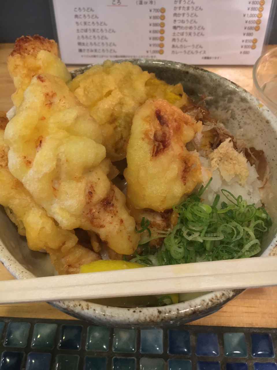 道の駅大歩危は飲食店、お土産、妖怪と石の博物館の大きく3つの要素で成り立っています。飲食店を利用したのですが、フードコート形式になっています。暖かいものは祖谷そばが楽しめます。また阿波尾鶏の鳥天など一品ものも注文しました。味は普通でした。テラス席があり、吉野川とたまに通過する鉄道を見ながら、また風を感じで食事を楽しめる点は良かったです。