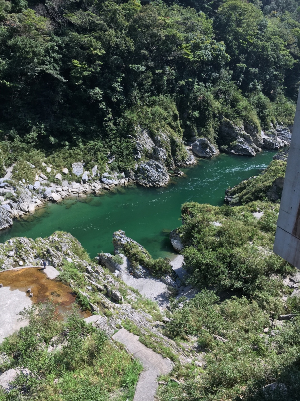 大歩危小歩危という地名の由来は歩くのが危ないような所という説もあるようですが、まさしく名に相応しい所でした。岩が荒々しく立っており、その間に綺麗な吉野川の清流を見ることができます。秘境に来たという感じでワクワクする場所でした。