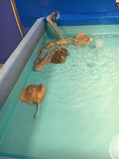 近鉄賢島駅から徒歩すぐです。入口付近にはペンギンがおり、その後水槽が続きます。円型の水槽では定期的に海女さんの餌やり実演が見れます。全般的には小さなレトロな水族館といった感じです。最後に生き物に触れるタッチプールがあるのですが、ここが物凄く充実しています。ドクターフィッシュやヒトデ、ナマコはありがちですが、なんとカブトガニに触れます。また小型のサメやエイも触ることができます。ザリガニヤドカリ釣りもあって大人も子供もはしゃいでいました。