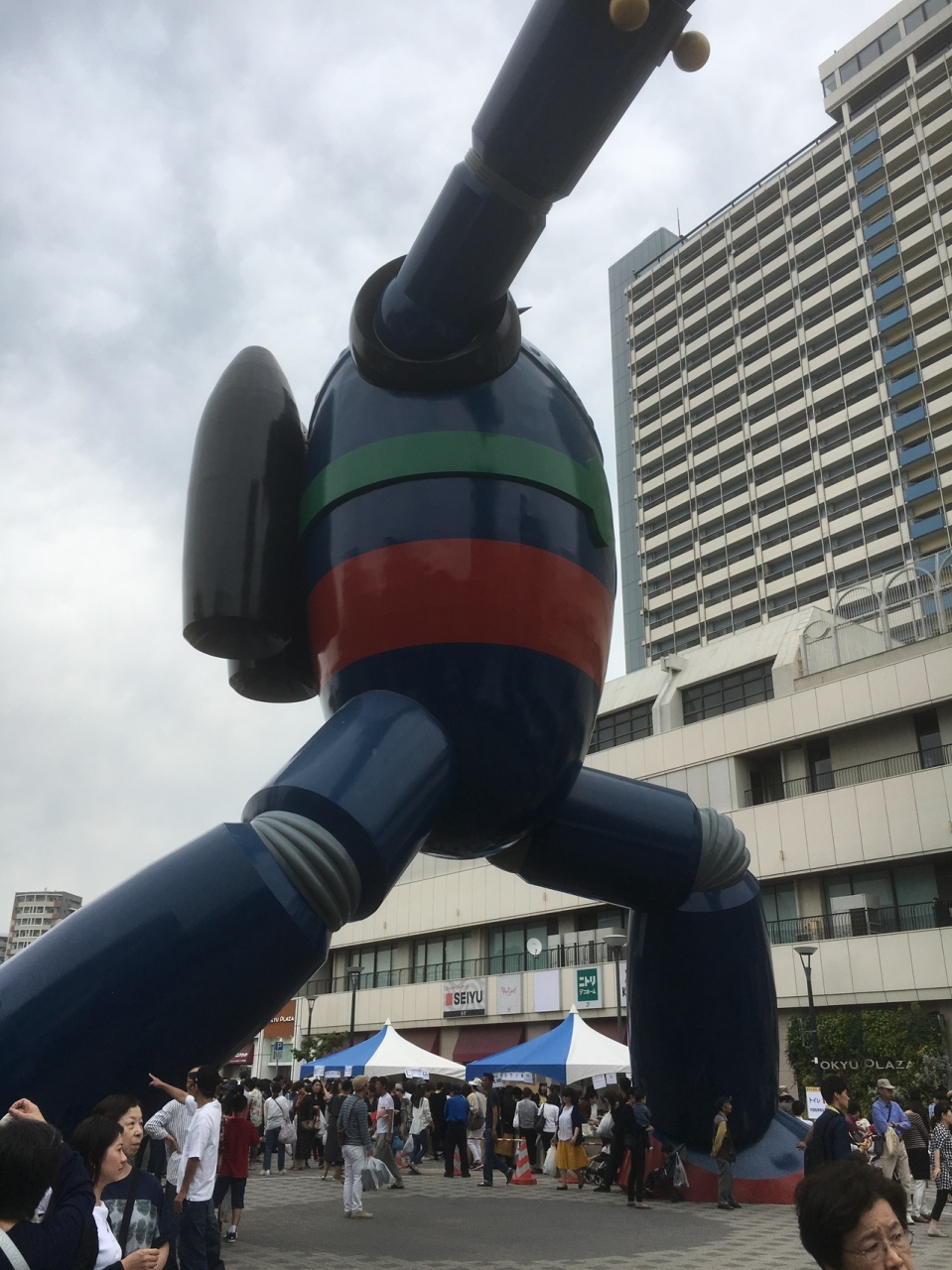 新長田駅前にひときわ目を惹く鉄人28号の像が立っていました。近くまでくるとかなりの大きさに驚かされます。実寸大で設計されているようでした。作者の横山さんが神戸市の出身とのことで建てられたようです。商店街の中に鉄人28号の完成までのビデオが上映されているので合わせてみると面白いです。