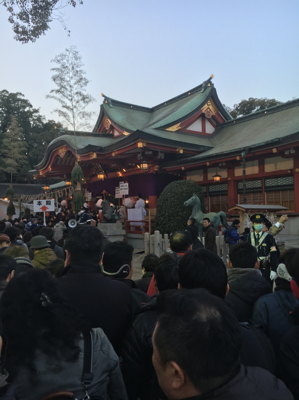 福男マラソンで有名な西宮神社の初詣に行きました。ものすごい人で通行整理されており、本殿まで1時間以上かかります。煌びやかな露店も立ち並び新年らしい風景が広がっています。通常日は池をみたり、比較的ゆっくり参拝できます。骨董市なども開催されたりしています。