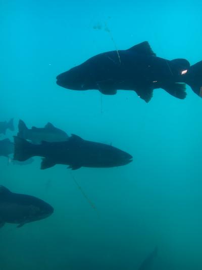 ワカティプ湖に生息している魚を地下の施設に入って見ることができます。一つの部屋に水族館のようなガラス張りの面があります。うなぎのような生き物やサケのような大型魚、あとは鴨が潜ってきます。お金を入れると餌が撒かれる仕組みになっており、そうするとたくさんの魚が寄ってきて面白いです。