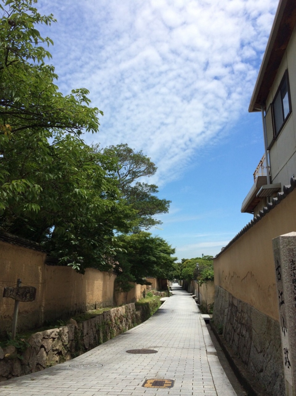 失礼ながらあまり期待せず路線バスで寄り道しました。バス停から水路沿いを歩き鳥を眺めながら進むと、とても綺麗に整備された通りに当たり閑静な住宅街といった感じでした。その後パンフレットでも見かける城下町長府の通りに出ると、肌色に近い壁が並んだ景色が広がります。城下町の雰囲気なのですが何か一味違った景観で、とても印象に残っています。