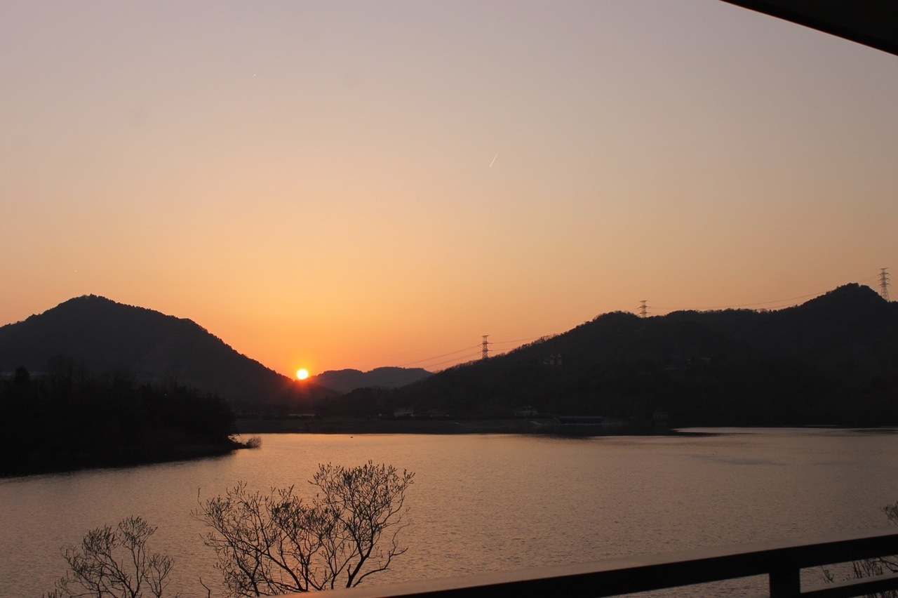 初見の時は自然の池だと思ってましたが、実は日本有数の貯水量の人工池とのこと。釣りをしている小さな船がいくつか見られました。犬山市街方面にはいくつか茶屋が並んでいます。景観は自然の池そのもので穏やかな雰囲気です。また入鹿池に沈む夕日を眺めることができました。