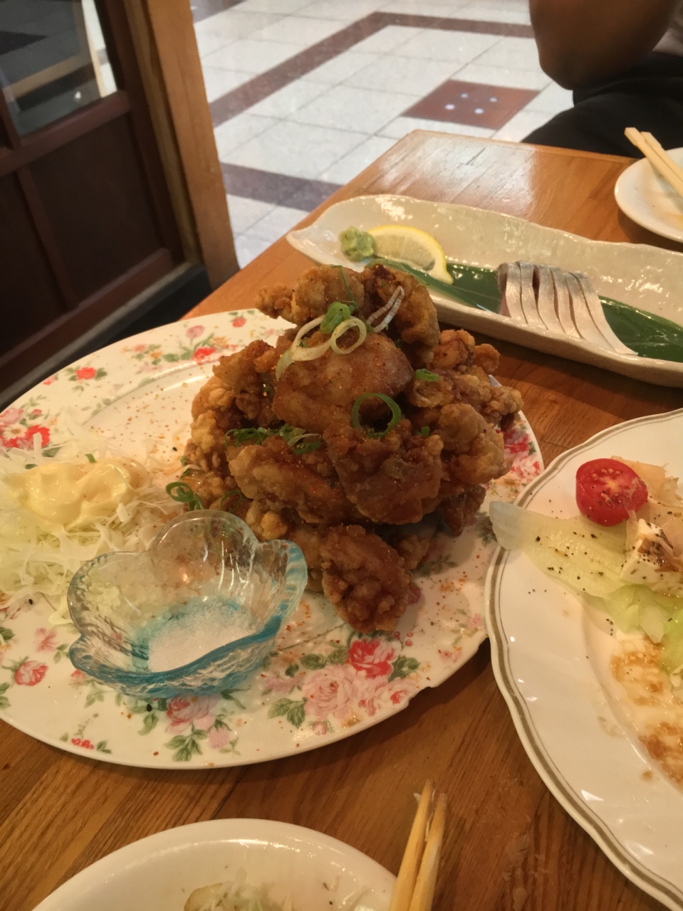 大阪駅前第3ビルにあるこちらのお店へ。ランチの大盛り唐揚げが有名なようですが、夜に伺いました。メニューが豊富で選ぶのが大変ですが、どれもそこそこ美味しかったです。そこに唐揚げをオーダーし、量をみくびっていたため満腹になりました。向かいの店舗は阪神タイガース関係の店なのか六甲おろしで盛り上がっていました。座席は少し窮屈なのでその点留意が必要かと思います。