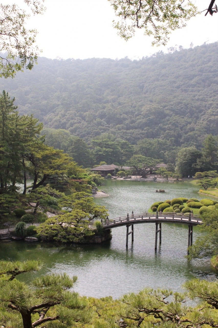 高松駅から栗林公園に向かい、北口から入園しました。最初は一般的な庭園で鳩が沢山いたり、池から亀が出てきて歩いたりしているのが見れました。公園の南側にある飛来峰に登ると庭園が一望できるのですが、ちょうど正面に山があり山と庭園のコントラストが素晴らしいです。また都市の中心部にいたのに山が見えるため、一瞬どこにいるのか忘れさせるくらい素晴らしい景観でした。海外からも高く評価されている理由がよく分かりました。