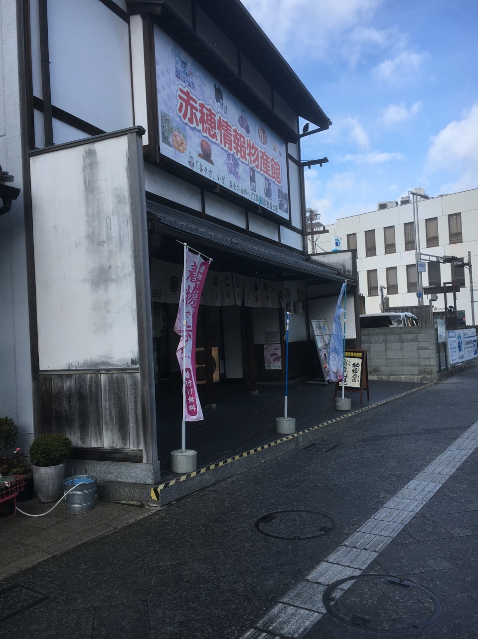 播州赤穂駅からメイン通りを歩いた沿いにあります。店内はお土産が充実しており、塩味饅頭の試食が揃っていてメーカーごとに食べ比べをして購入することができます。赤穂の塩、赤穂浪士、牡蠣ふりかけなど赤穂の特産物は一通り揃っています。また店員さんがとても気さくで商品の提案をしてくれました。
