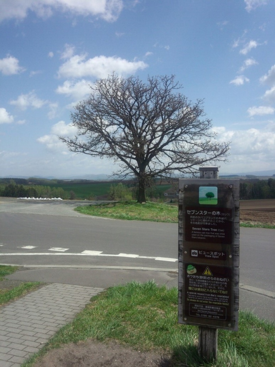 ドライブの途中で寄りました。車から降りてみた景色は広大な大地。セブンスターの木は観光スポットになっていて観光客の方も何組かいました。セブンスターの木よりも360度見渡す景色が印象的でした。また肥料のニオイが凄かったのも印象的です。