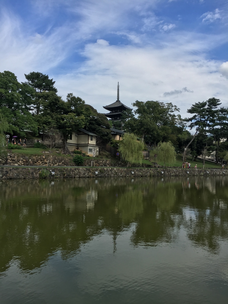 近鉄奈良駅から商店街を抜けてよもぎ屋の前を進むと到着します。ここから興福寺五重塔が見えるので写真スポットです。柳や五重塔が水面に映って綺麗でした。また猿沢池の七不思議というものがありますので訪れた際は見てみてください。