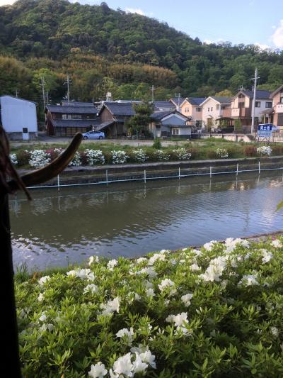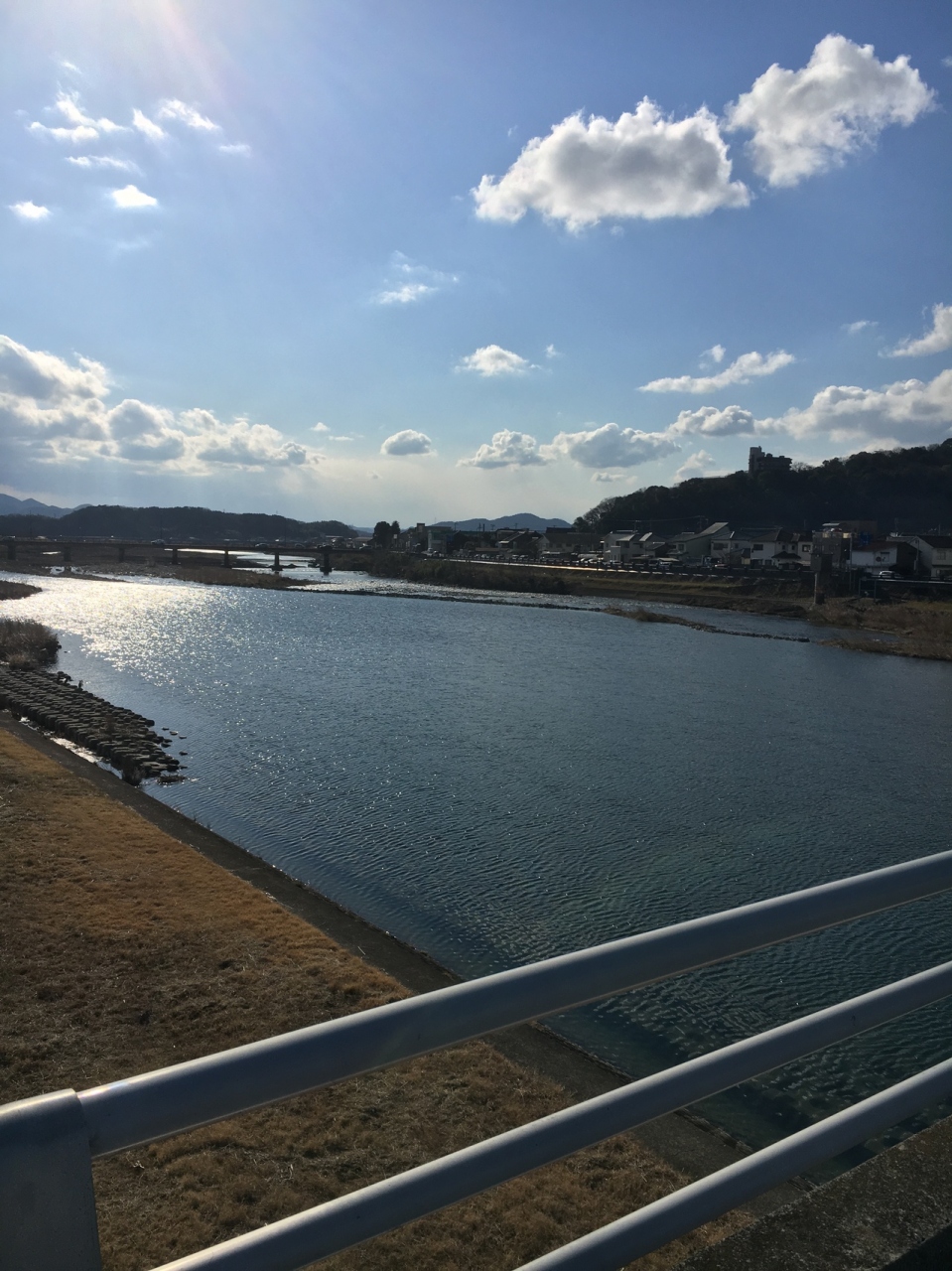 本竜野駅から街中に向かって歩いていた途中に、徒歩でしか通れない細い橋があります。写真はその上から撮ったものです。天気が良かったのもありますが風がとても気持ちよく、川面が光り、穏やかな川に見えました。橋からはヒガシマル醤油の工場も見えました。