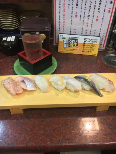 ランチに訪問しました。早い時間に行ったので待たずに入れました。一応回転レーンがありますが、メニューや一品が乗っていただけで、寿司は直接注文しました。寿司セットと石川県の地酒冷を注文しました。のどぐろは炙りと生が一貫ずつ入っていてとても美味でした。追加でガスエビを注文、これもまた美味でした。昼から勢いよく酒が進みました。
