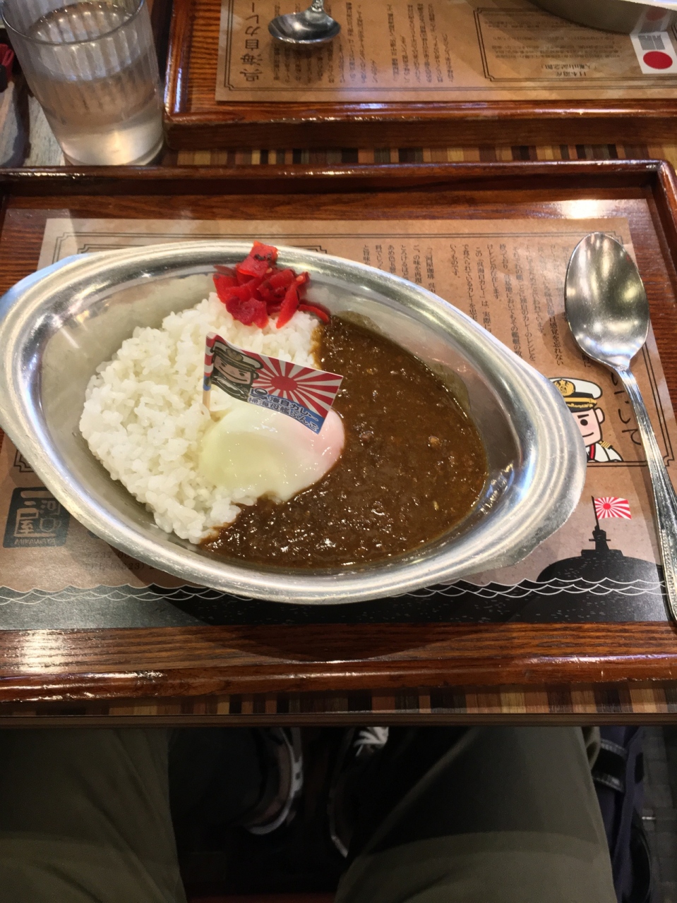 呉では三軒ミニサイズのカレーをはしごしましたが、どこも大差なく美味しかったのですが、こちらのカレーが一番好きな味でした。挽肉がよいアクセントになっており、また器も海軍っぽく良かったです。セルフサービスで水がいただけますが、珈琲等のメニューも当然充実していました。