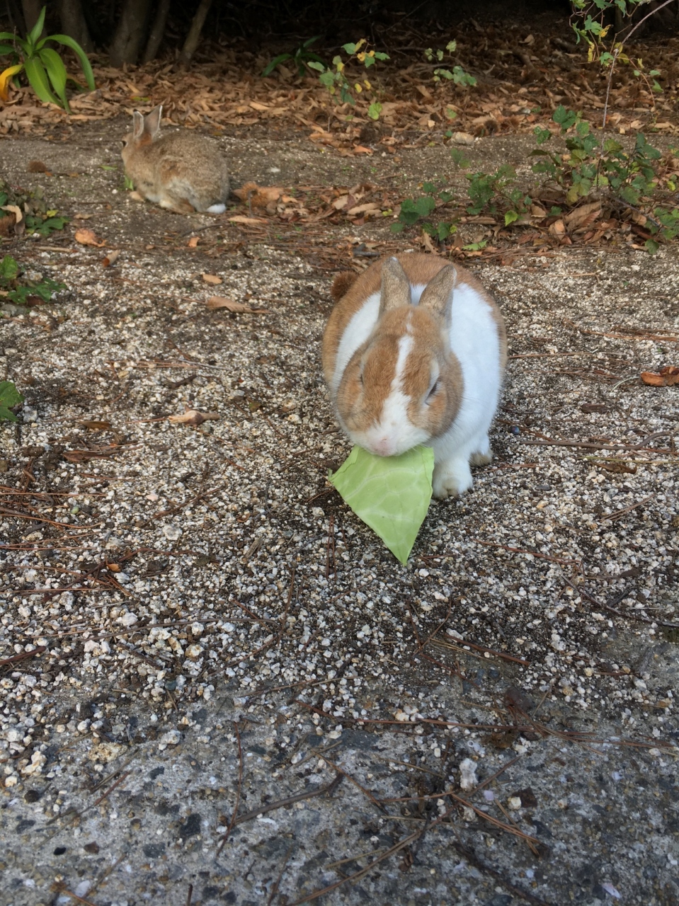 うさぎで有名な大久野島ですが、かつては毒ガスが作られていた負の遺産も見ることができます。ウサギはコロナによる来島者の減少で山奥に餌を求めて移動しているようで、普段より少ないと知りました。ですが餌をあげるには十分なウサギはいます。特に奥の方に行く方が餌をもらってないウサギが多く食いつきは良かったです。離島ののんびり感と瀬戸内の景色、それにウサギと楽しめる島でした。