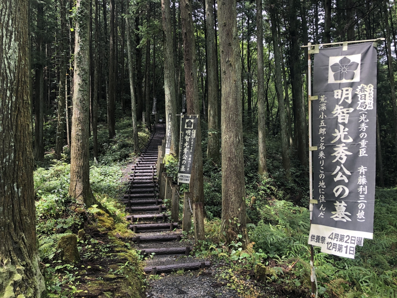 光秀は本能寺の変の後、山崎の合戦で秀吉に敗れたが難を逃れこの地に埋葬された、とある