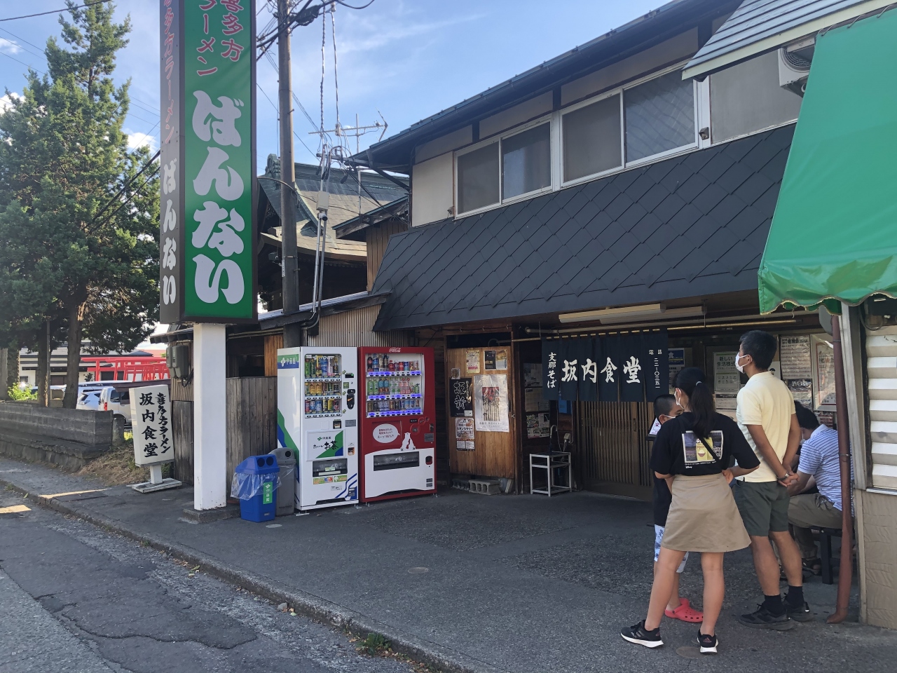 福島市滞在中、尾瀬を訪れた帰り道に喜多方市に立ち寄り、名高い喜多方ラーメンを食べることにした。人気店を検索して、喜多方駅にほど近い坂内食堂を選んだ。18時ころ店に入ろうとすると10人ほどの行列ができていた。20分程待たされた後入店、まずカウンターで注文し代金を支払った。