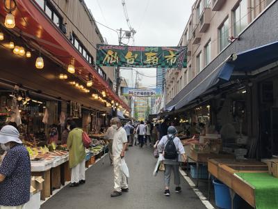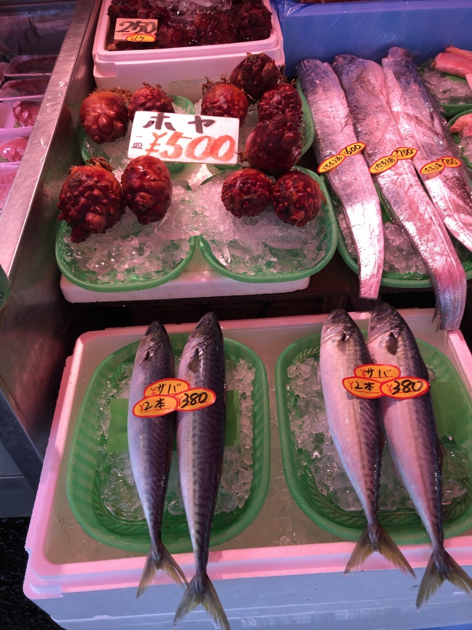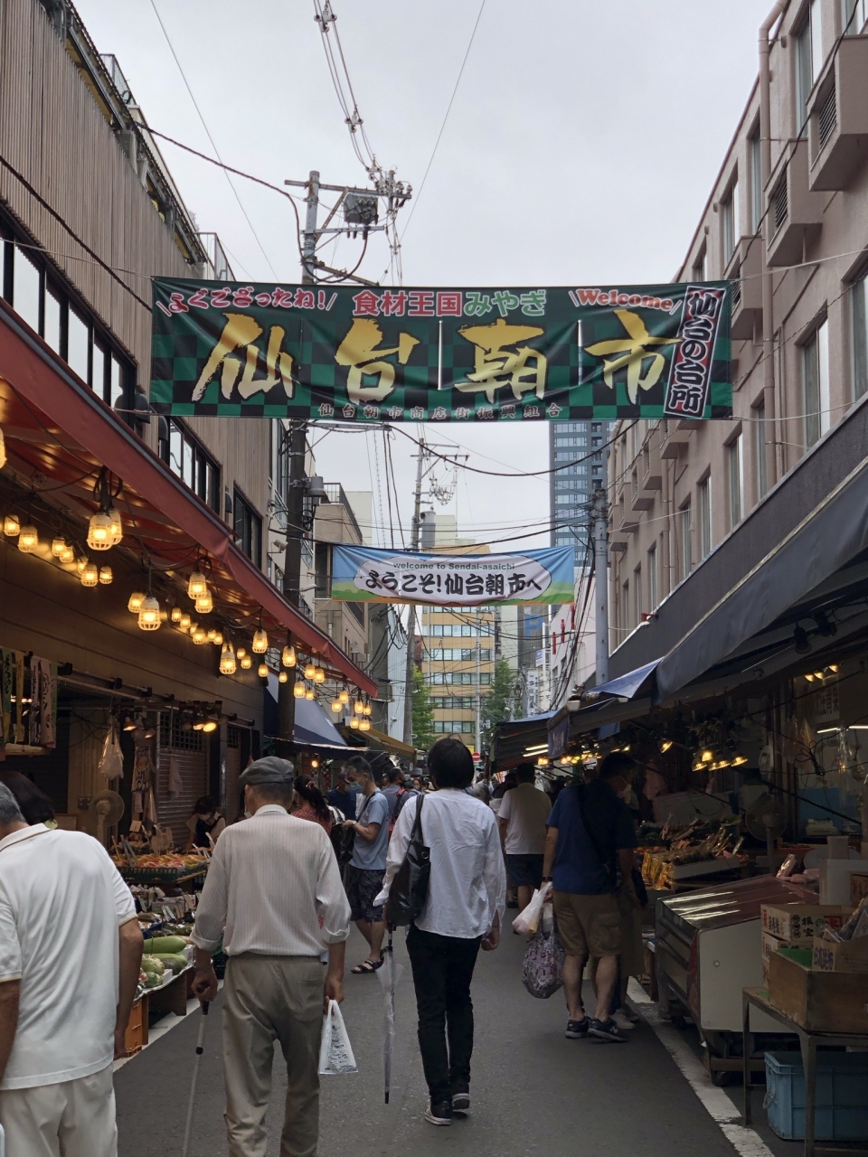 仙台の台所といわれる朝市、狭い路地に所せましと食品が並べられている