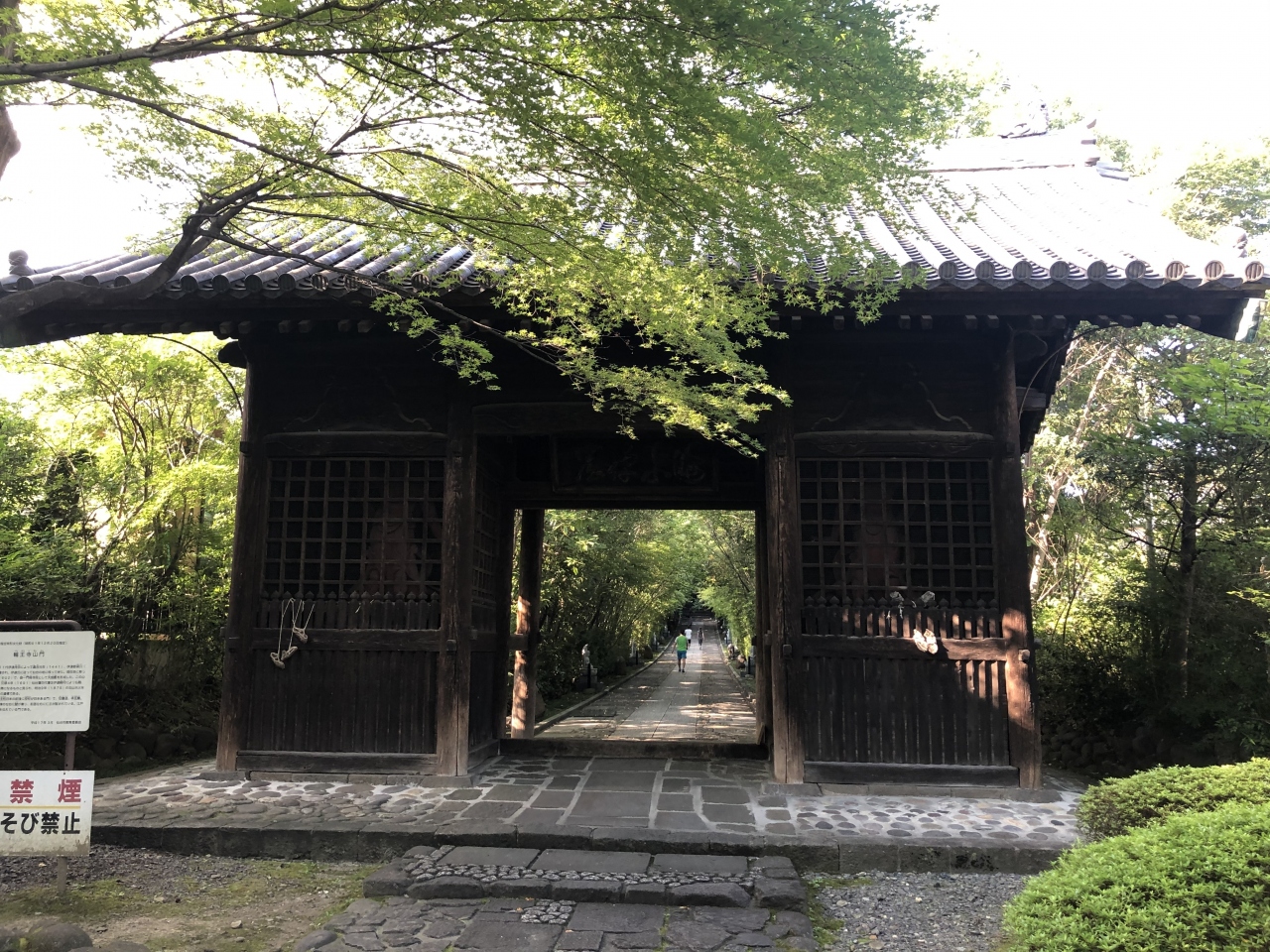 立派な参道を登って境内に入る。参拝者は誰もいない。山門の横に全景図があり、枯山水庭園があるとのこと、入り口を探したが見つからなかった。輪王寺に比べると小振りで、庭園もなく見どころは少ない。アジサイの花が盛りの時期に訪れるべき寺である。- 旅行時期