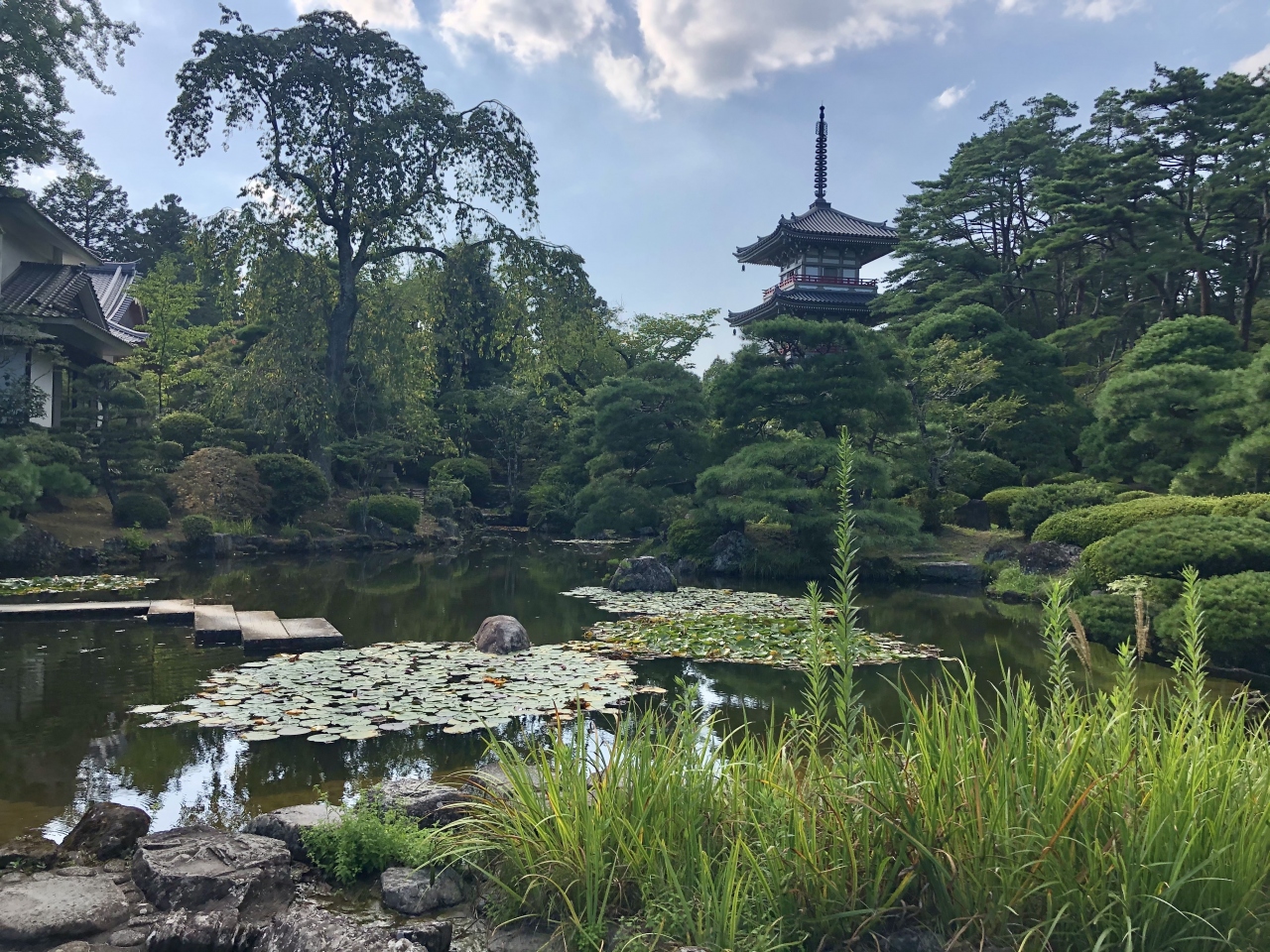 北山五山の1番西、モネの睡蓮を思い出させる池から眺める三重塔は印象的