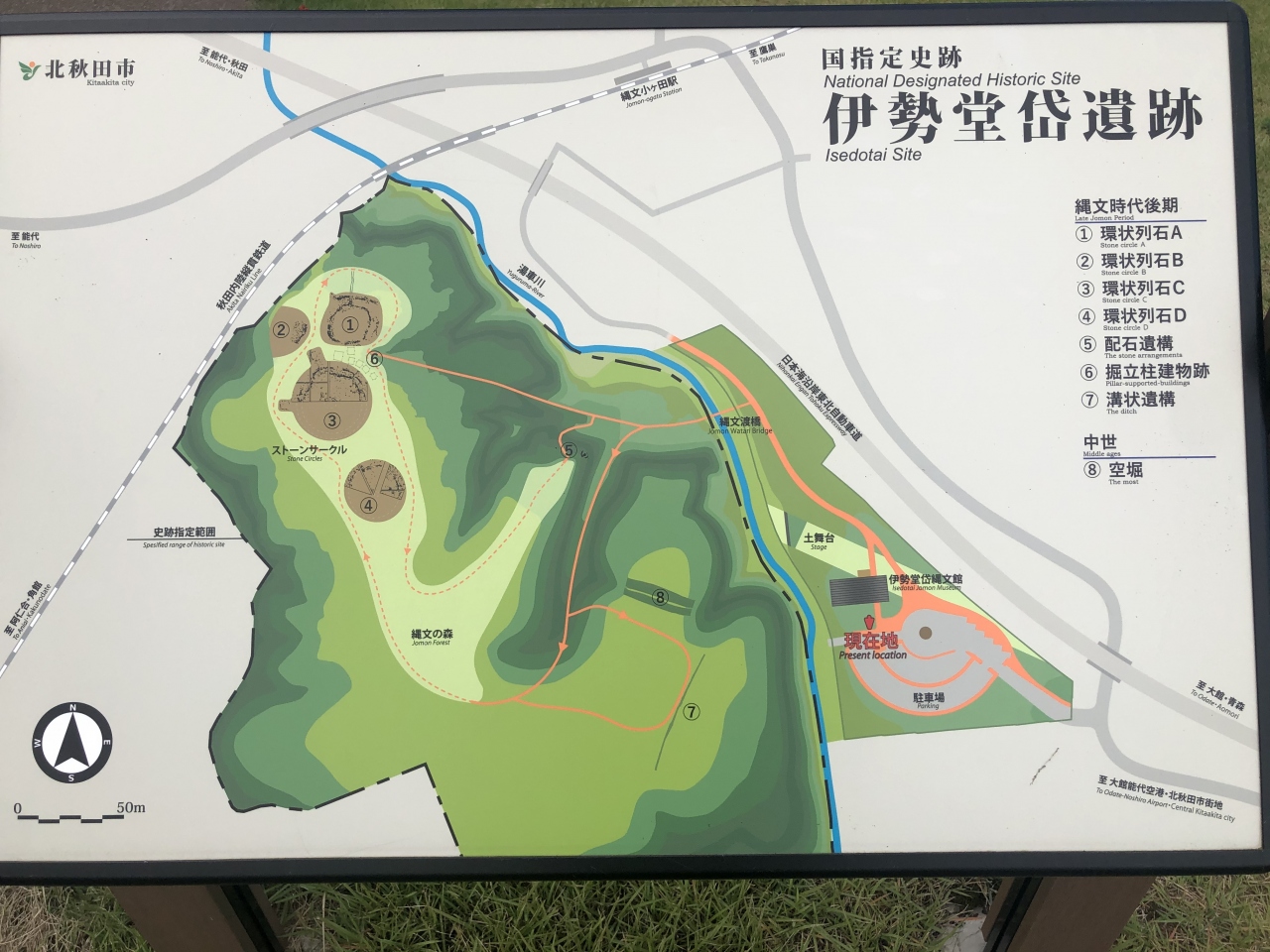 「北海道・北東北の縄文遺跡群」の遺跡は北海道・青森県・岩手県・秋田県の1道3県に点在する。伊勢堂岱遺跡は縄文時代後期後半(約4000年前)の大規模な祭祀場であったらしい。1995年の大館能代空港のアクセス道路建設に先立つ発掘調査で発見され、環状列石や配石遺構、堀立柱建物跡、土壙墓、捨て場など、多くの祭り・祈りの施設が発見された。遺跡の隣接地に伊勢堂岱縄文館(入場無料)が建てられ、概要を理解することができる。縄文館から徒歩5分ほどストーンサークルと呼ぶ円形の環状列石4ヶ所を間近に見学できる。- 旅行時期