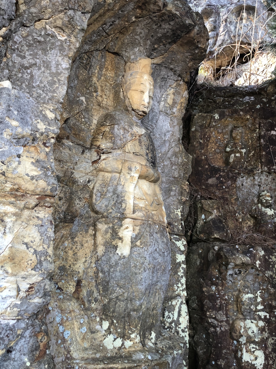 福島滞在中の週末、芭蕉ゆかりの信夫文知摺観音を訪れた後、岩谷観音を訪れた。私はインドのアジャンター、エローラの石窟をおとずれて、摩崖仏には大いに関心がある。日本では宮城県の瑞巌寺で小規模な摩崖仏を見ることができた。