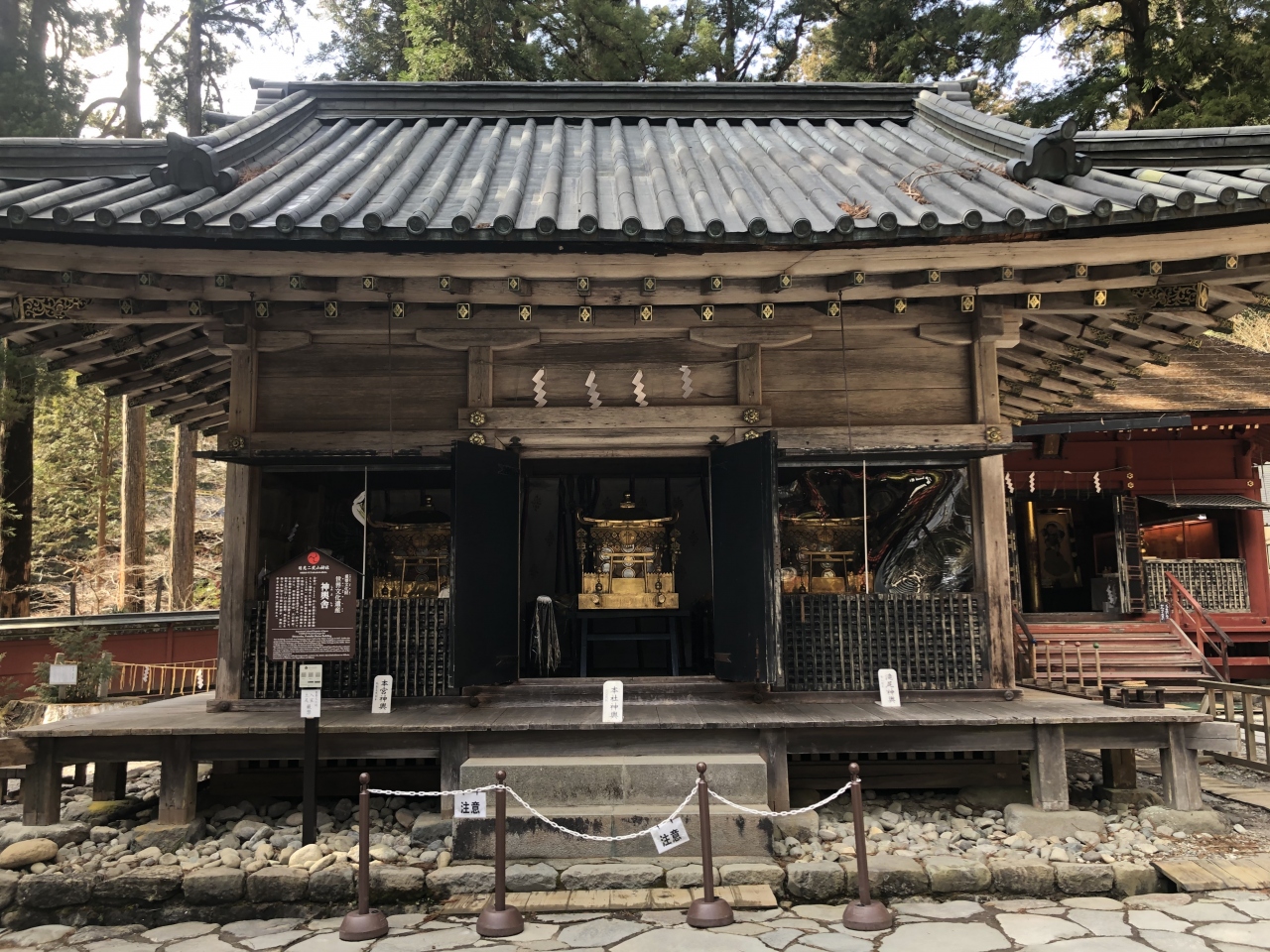 日光東照宮は、徳川家康を神格化「東照大権現」を祀る神社であり、1617年に建設された。陽明門など近年改修されており、絢爛豪華な装飾に驚かされる。しかし、明らかに日本古来の様式ではなく、ブルーノ・タウトが桂離宮を絶賛した後、日光については「すべてが威圧的で少しも親しみがない」と酷評している。芭蕉もこれと同じ印象も持ったのかもしれない。- 旅行時期
