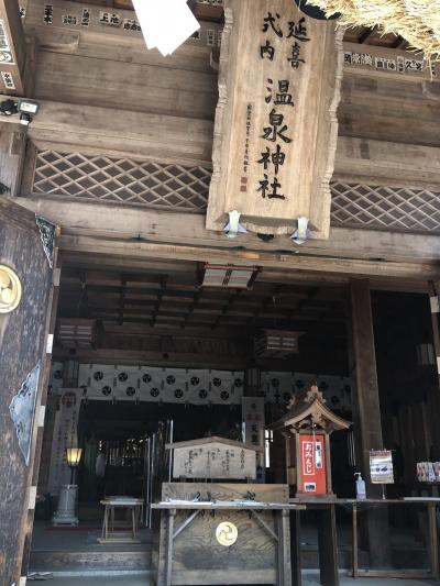 「奥の細道」を辿る旅の途中、殺生石を訪れ隣接する温泉神社を参拝した。殺生石からは徒歩5分の距離である。殺生石とは直接の関係はないが、9世紀に亜硫酸ガスのにおいが漂うこの地に温泉を発見し、それを感謝するため祠がたてられたのが由来であるという。その後、那須与一が屋島の戦いの戦勝を祈願、見事扇の的を射抜いて名声を轟かせ那須郡の総領となり、1686年に正一位に叙せられた。